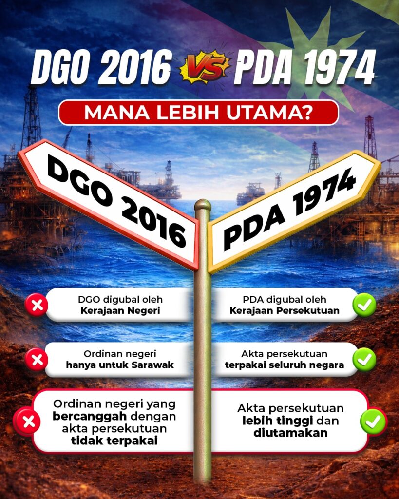 Kononnya, PDA ini tidak boleh terpakai di Sarawak kerana ianya peruntukan undang-undang baharu yang datang pada 1974, sedangkan sejak 1958, Sarawak telah mengguna pakai Ordinan Perlombongan Minyak (OMO) 1958.